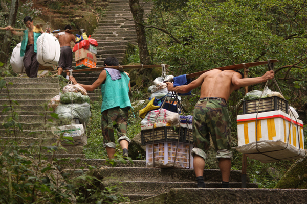 Published March 8, 2013 at 600 × 400 in Porters carrying goods up the steps of Huang Shan (Yellow Mountain), Anhui