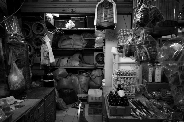 Man sleeping, Yuen Po St bird market, Hong Kong