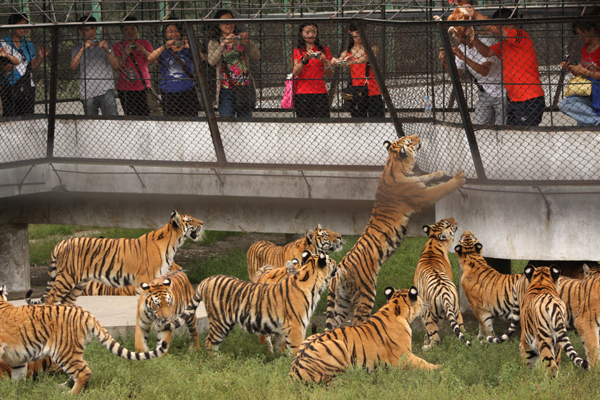 Published March 8, 2013 at 600 × 400 in Chinese man throws a live chicken to tigers in the Siberian Tiger Park outside Haerbin, Heilongjiang