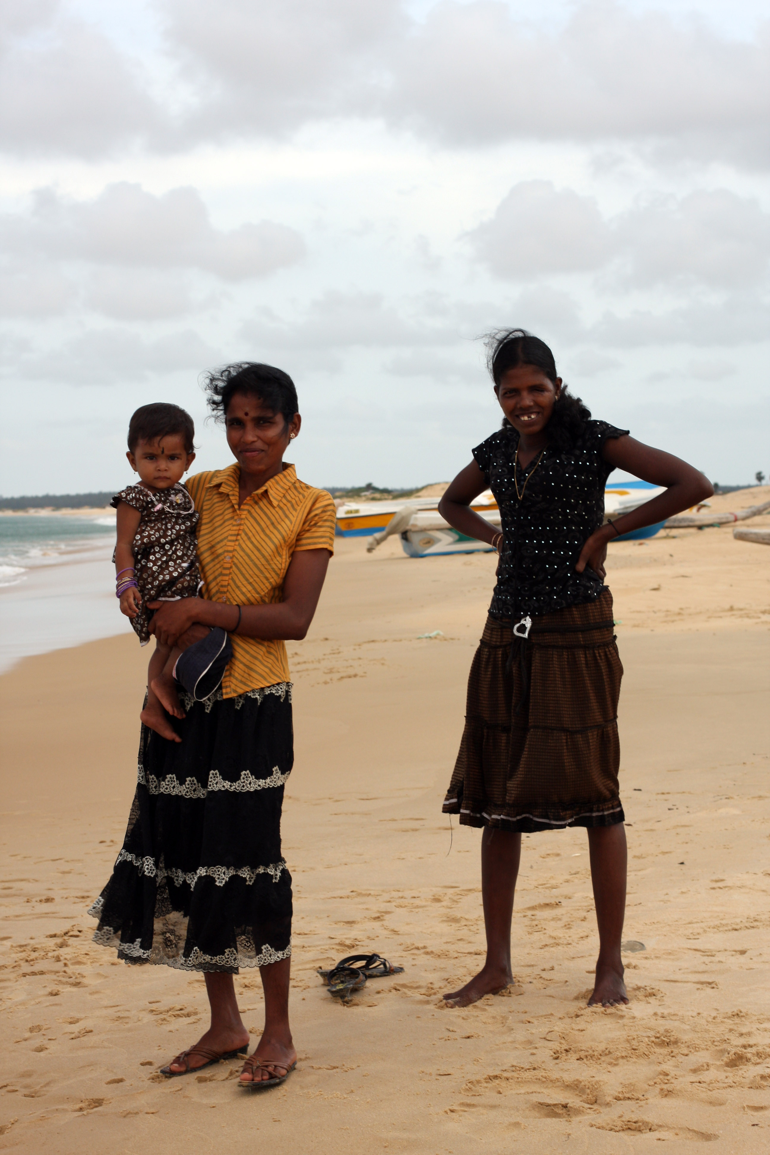 We walked along Munai beach together, past a military checkpoint and then some ruined houses. It’s a lovely, wild beach and I felt like I was at the end of the Earth. There were some women and children beside the sea, which was a pretty scene until I learned that one of the women had been injured by a land mine and lost an eye. I asked her if I could take her photo and she assented, laughing shyly. A woman with her had been grazed by a bullet on her neck.