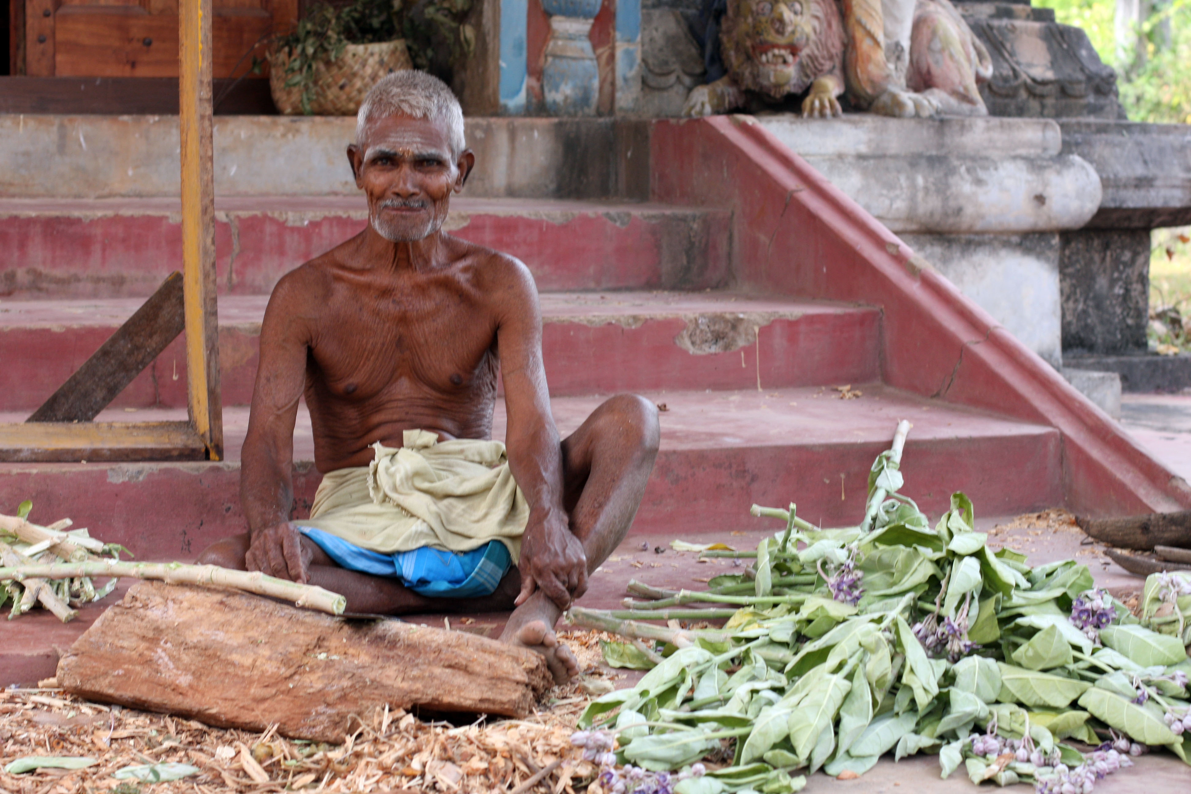 The sacred spring itself is right beside the sea and there are separate bathing pools for men and women. Typically, the women’s area is enclosed by high walls whereas the men have a lovely view of the ocean. You can look along the coast and see military boats docked in Kankesanturai port. The men’s pool was packed with friendly local boys, many of whom had cycled there from Jaffna. As I watched they showed off their diving skills and played tricks on one another. Nearby there were stalls selling coconut, jaggery (sugar from the palmyra tree), and sticks of palmyra to chew on.