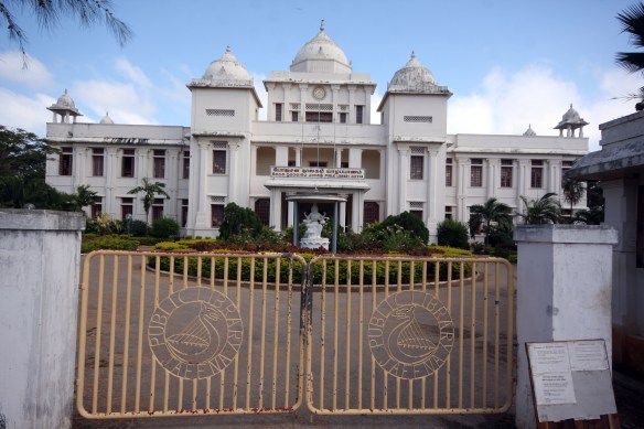 I began my second day with a visit to the Jaffna Public Library. This was top of my list because I knew it had huge significance for the Tamils, as a concrete symbol of their strong intellectual and cultural heritage. It was once thought to be the best library in South Asia, with a collection of over 97,000 books and many unique, archival palm-leaf manuscripts, but it was burnt down by an anti-Tamil mob in May 1981. This destruction was deemed to be an act of cultural genocide of the Tamils and was a significant rallying point in the build-up to civil war. It was also a symbolic beginning to the decline in educational standards in Jaffna, which inevitably took place during the conflict.