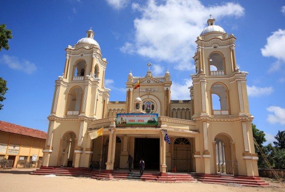 On my first day I simply walked around the streets. The first thing I noticed was there was none of the usual hassle from three-wheeler drivers. I passed whole groups of them but they didn’t even shout ‘taxi, madam!’ at me, much less start up their vehicles and buzz around me like giant flies, as they do in Colombo. In St Martin’s Seminary some trainee priests were playing loud hip hop music on professional turntables set up in the chapel! Other boys stood around reading the newspapers. Along Martyn Rd a large group of ladies was holding some kind of Christian celebration and several courteously asked me to sit down and join them, which I did for a few minutes. They spoke good English and told me to go and visit their church, St James, which was nearby. Jaffna has a lot of beautiful churches, both Catholic and Protestant, although the vast majority of the population is Hindu. All Muslim residents were expelled by the LTTE in 1990, but they are have begun to return. The Sinhalese residents either fled or were forcibly expelled. For these religions, there is only the Jummah Mosque on Jummah Mosque lane, or the Sri Nagavihara International Buddhist Centre, on Stanley Rd.
