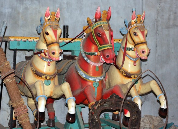 I reached the Nallur Kandaswamy Kovil just in time for the 4pm puja, when offerings were made to Murugan, the God of War, and his elephant-headed brother, Ganesh. A priest smeared some white powder on my forehead and I gave a R40 donation, which I thought was small until I saw other people just dropping coins into the box. This Hindu Kovil is one of the most important Hindu temple complexes in Sri Lanka, and in July and August pilgrims come from all over the country to attend the Nallur Kandaswamy Kovil festival. Pujas go on day and night during this time, and carved wooden animals and gods are carried through the streets. The wooden Jaffna horses became famous when the revered Sri Lankan architect Geoffrey Bawa used them for his interiors, and antique versions are now worth thousands of dollars. As I was leaving I passed one of the smaller temples and glimpsed five plump girls in saris doing yoga!