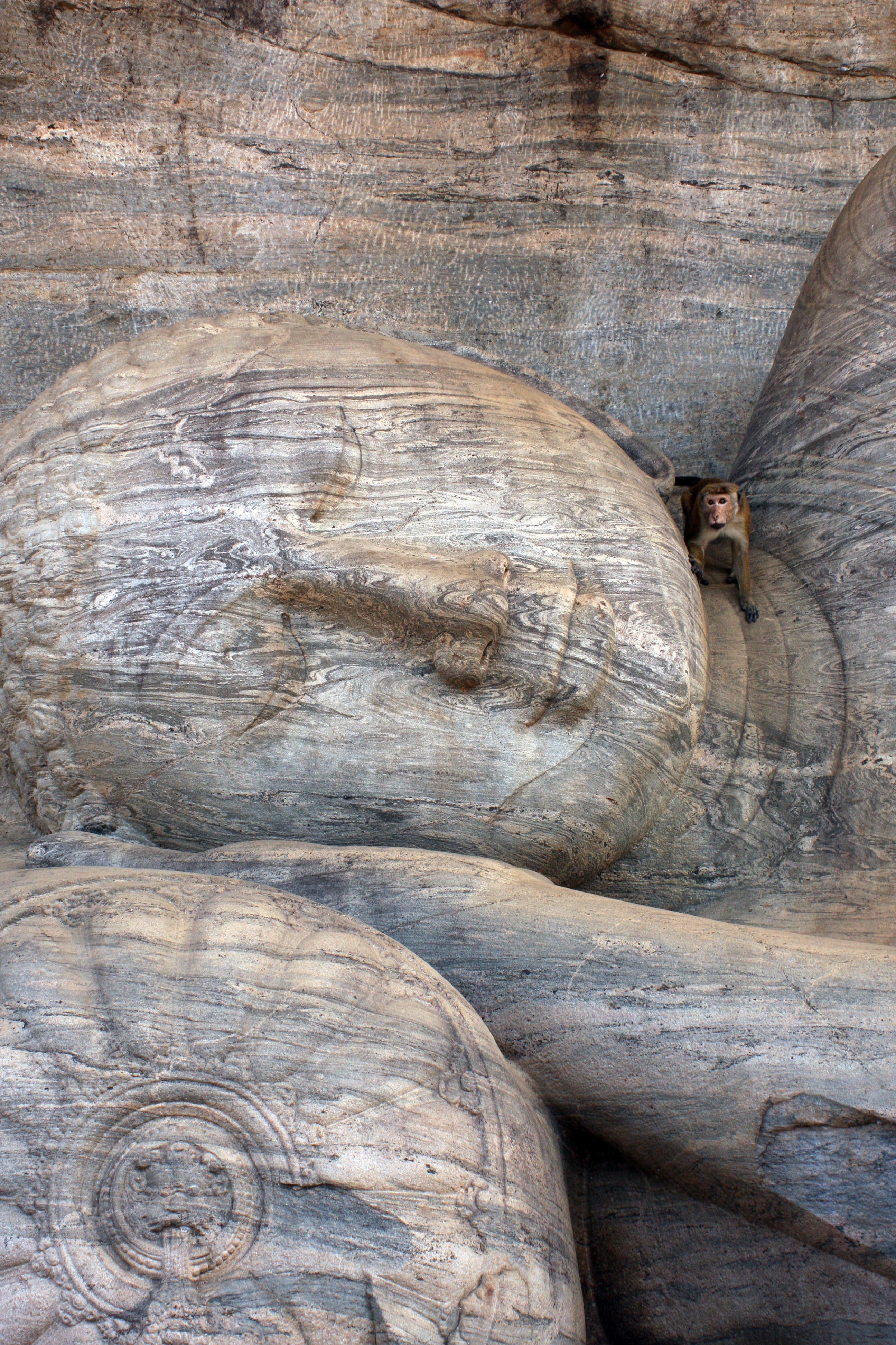 Gal Vihara reclining Buddha, and monkey
